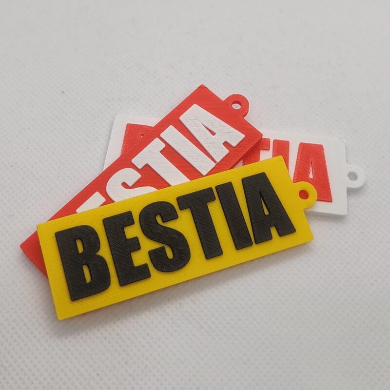 Brelok rolniczy z napisem „BESTIA”. Wykonany z wytrzymałego plastiku PLA metodą druku 3D. Idealny gadżet dla rolnika lub praktyczny prezent.