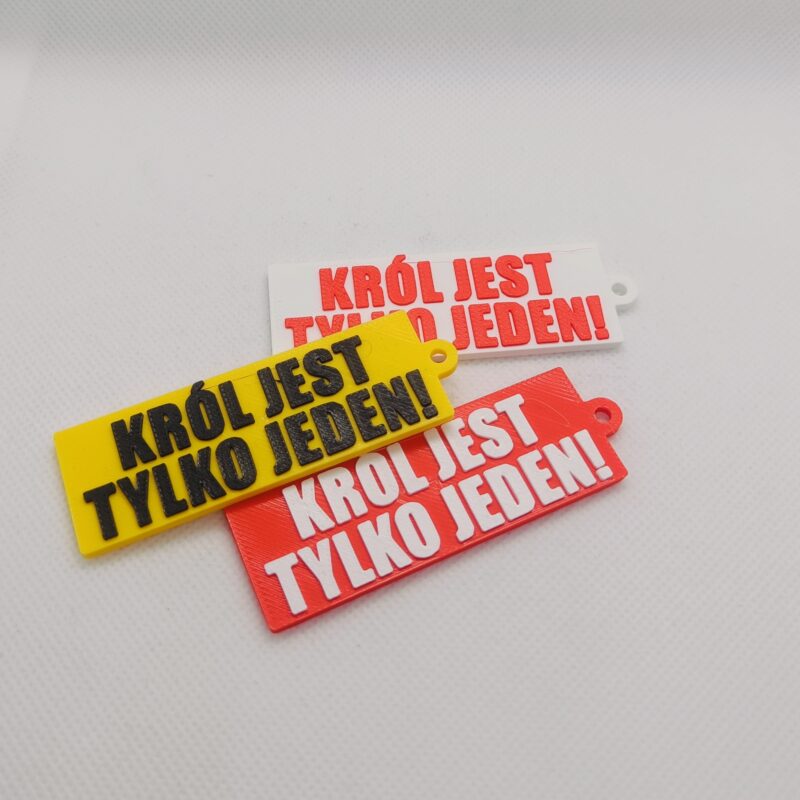 Brelok rolniczy z napisem „KRÓL JEST TYLKO JEDEN!”. Wykonany z wytrzymałego plastiku PLA metodą druku 3D. Idealny gadżet dla rolnika lub praktyczny prezent.