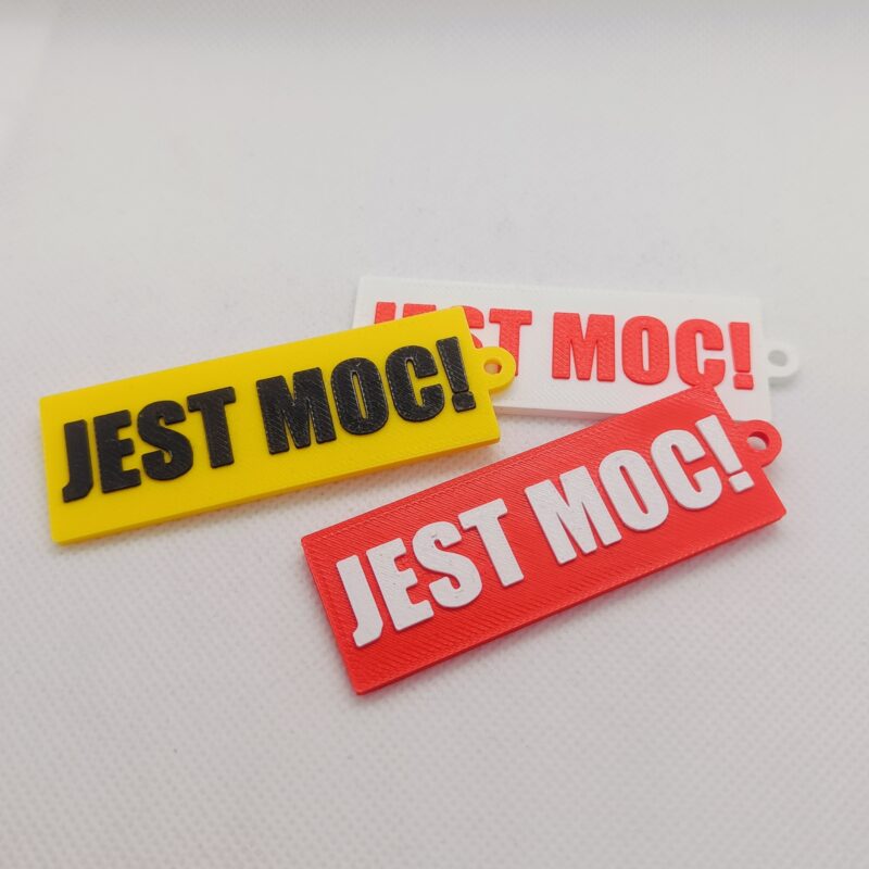 Brelok rolniczy z napisem „JEST MOC!”. Wykonany z wytrzymałego plastiku PLA metodą druku 3D. Idealny gadżet dla rolnika lub praktyczny prezent.