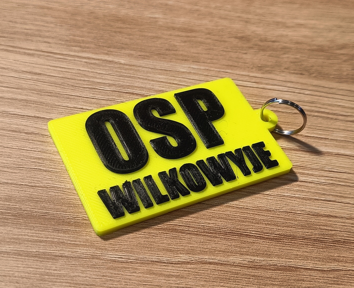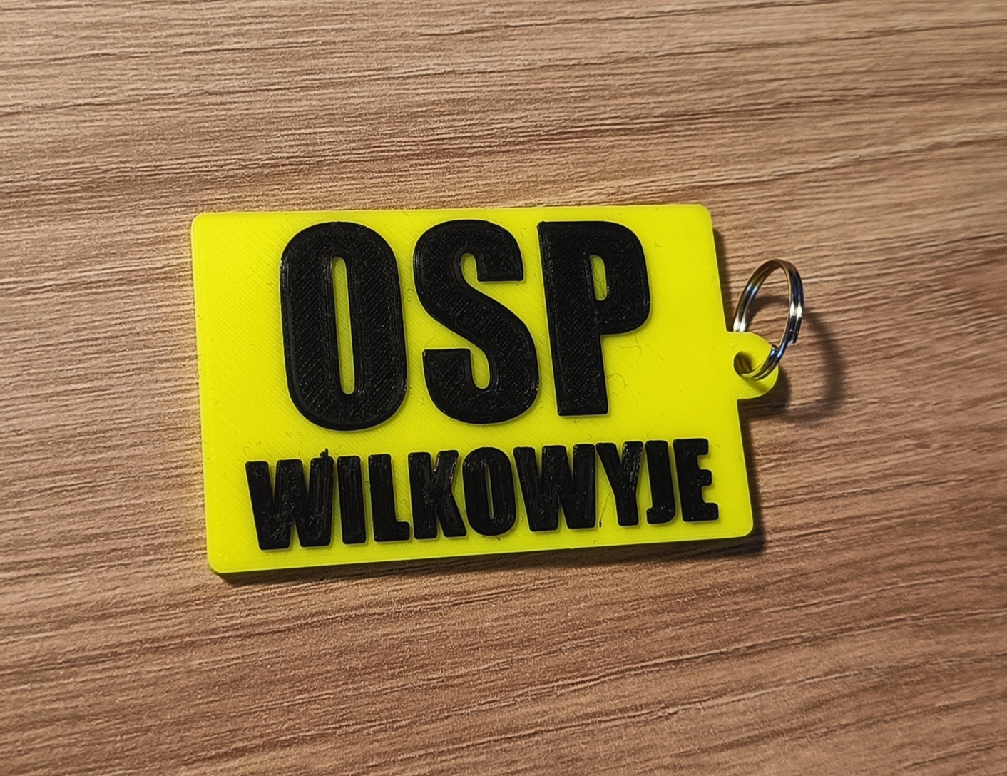 Brelok jednostronny z logo OSP i nazwą jednostki