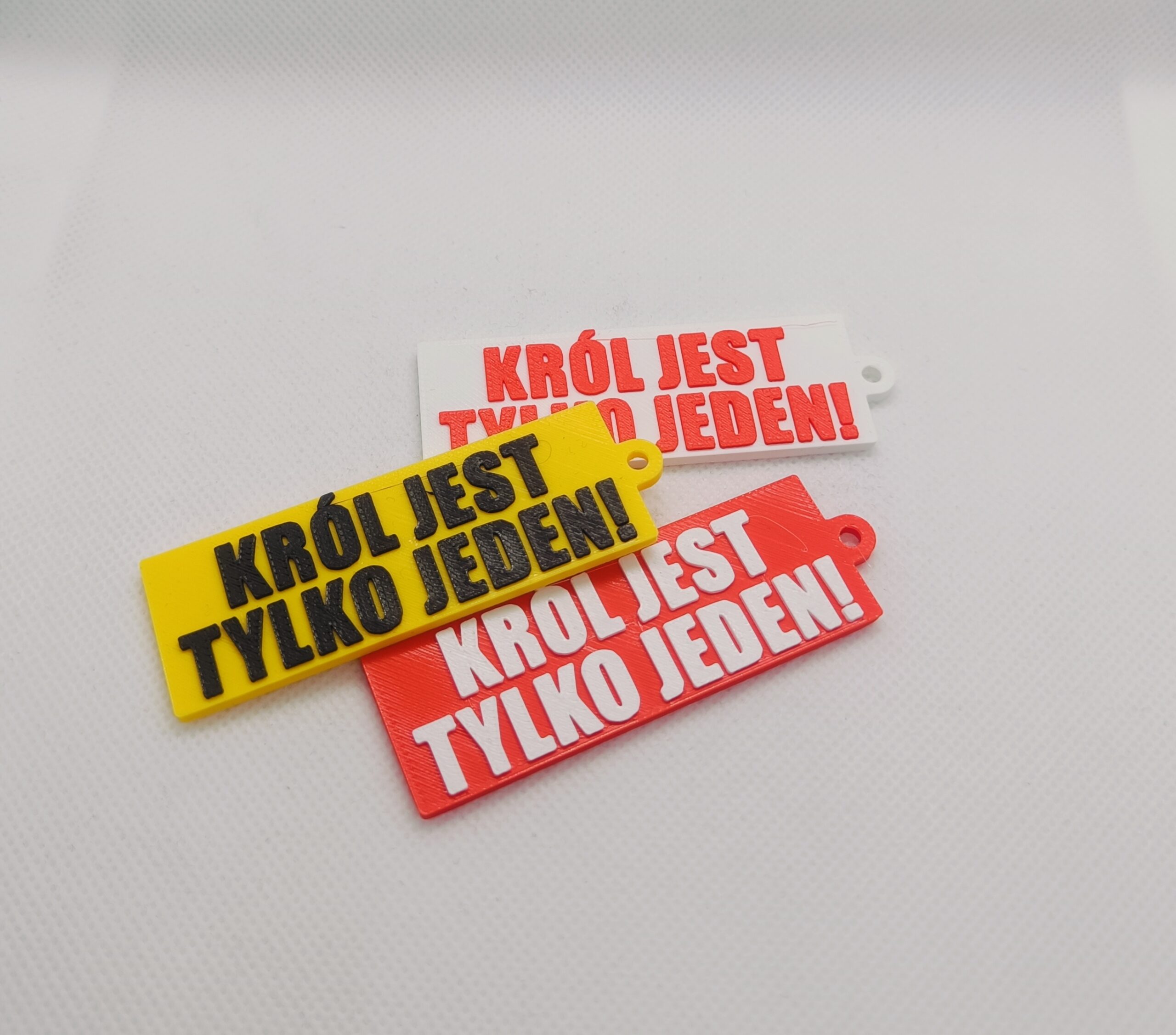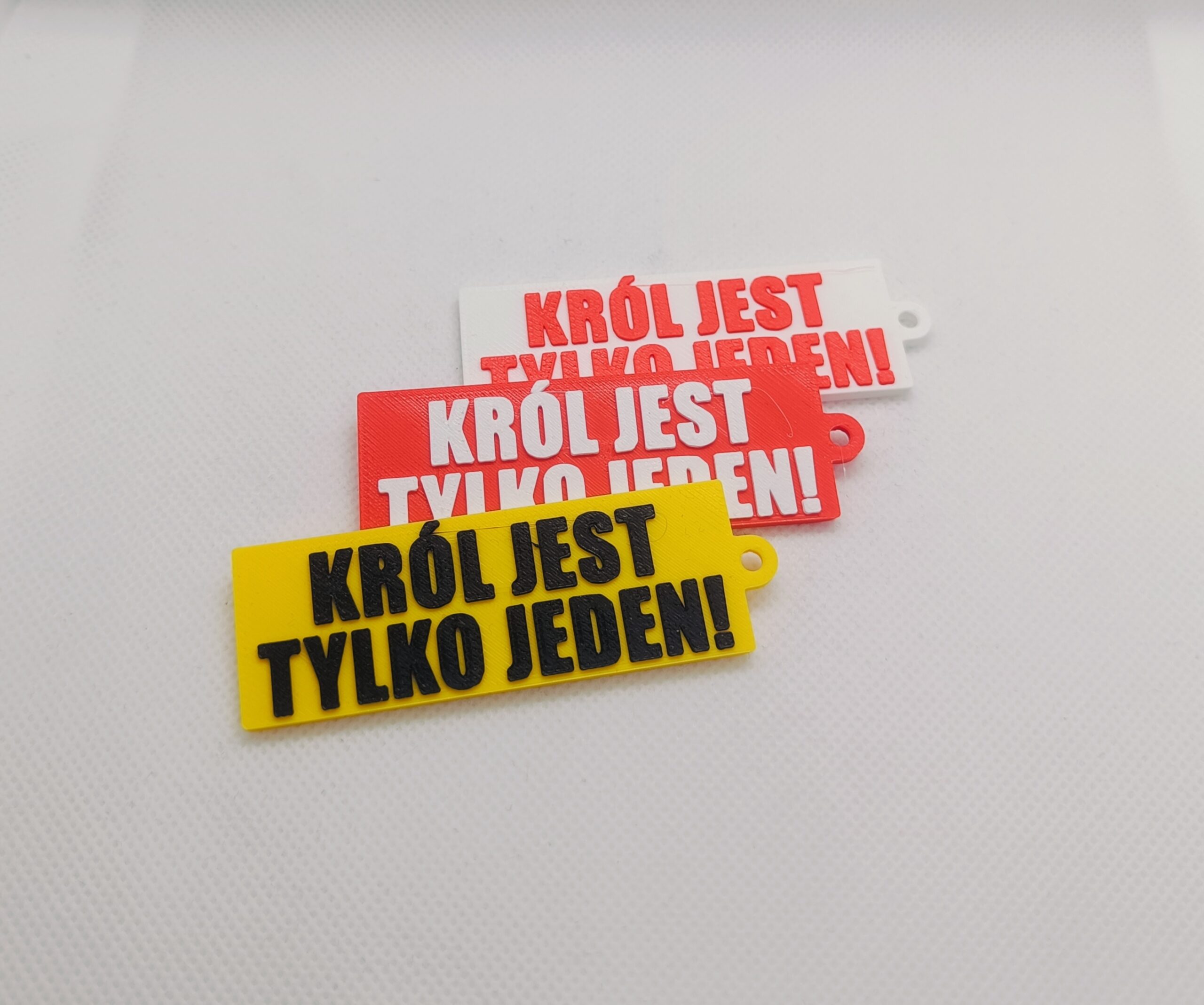 Brelok rolniczy z napisem „KRÓL JEST TYLKO JEDEN!”. Wykonany z wytrzymałego plastiku PLA metodą druku 3D. Idealny gadżet dla rolnika lub praktyczny prezent.