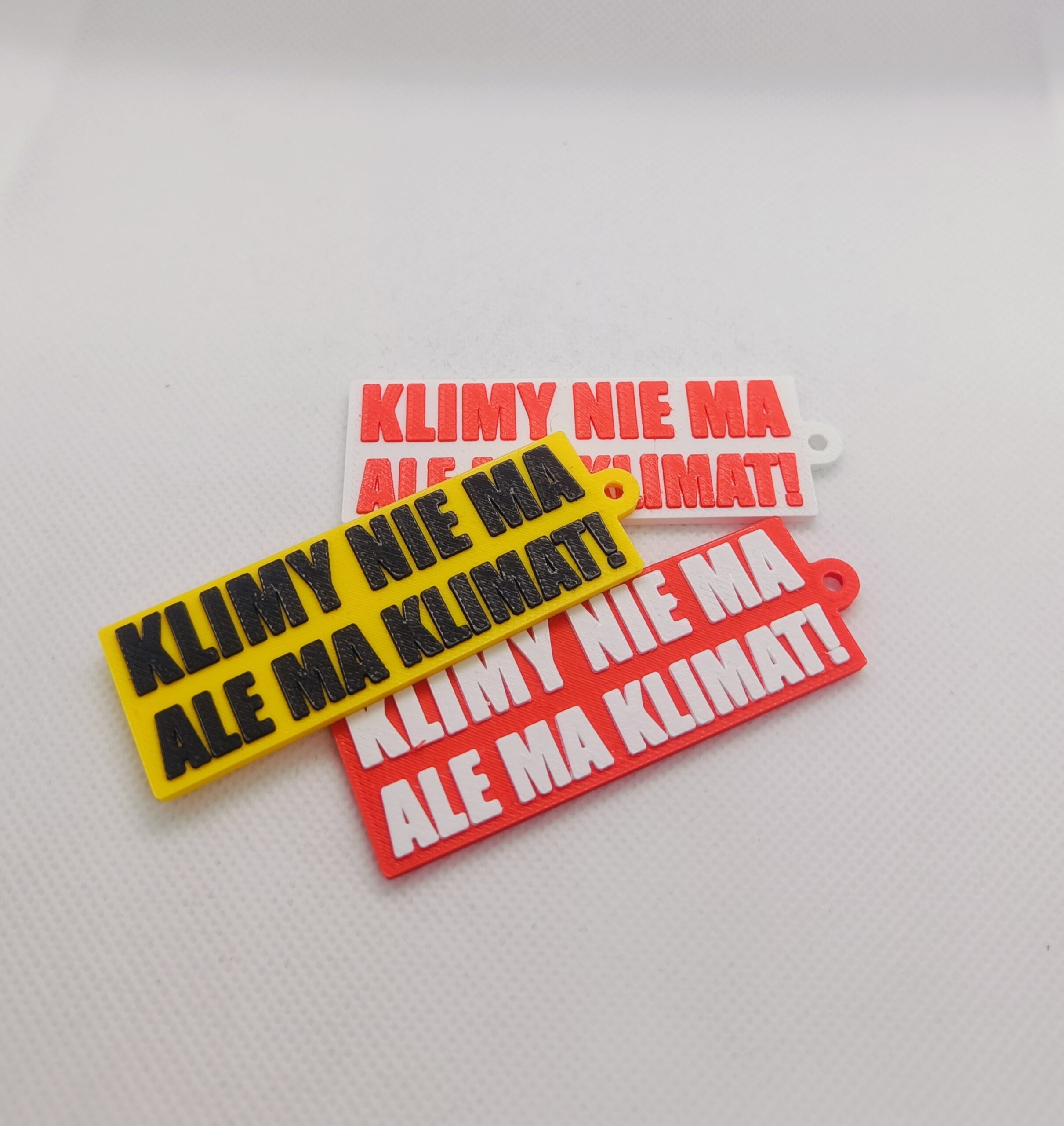 Brelok rolniczy z napisem „NIE MA KLIMY ALE MA KLIMAT”. Wykonany z wytrzymałego plastiku PLA metodą druku 3D. Idealny gadżet dla rolnika lub praktyczny prezent.